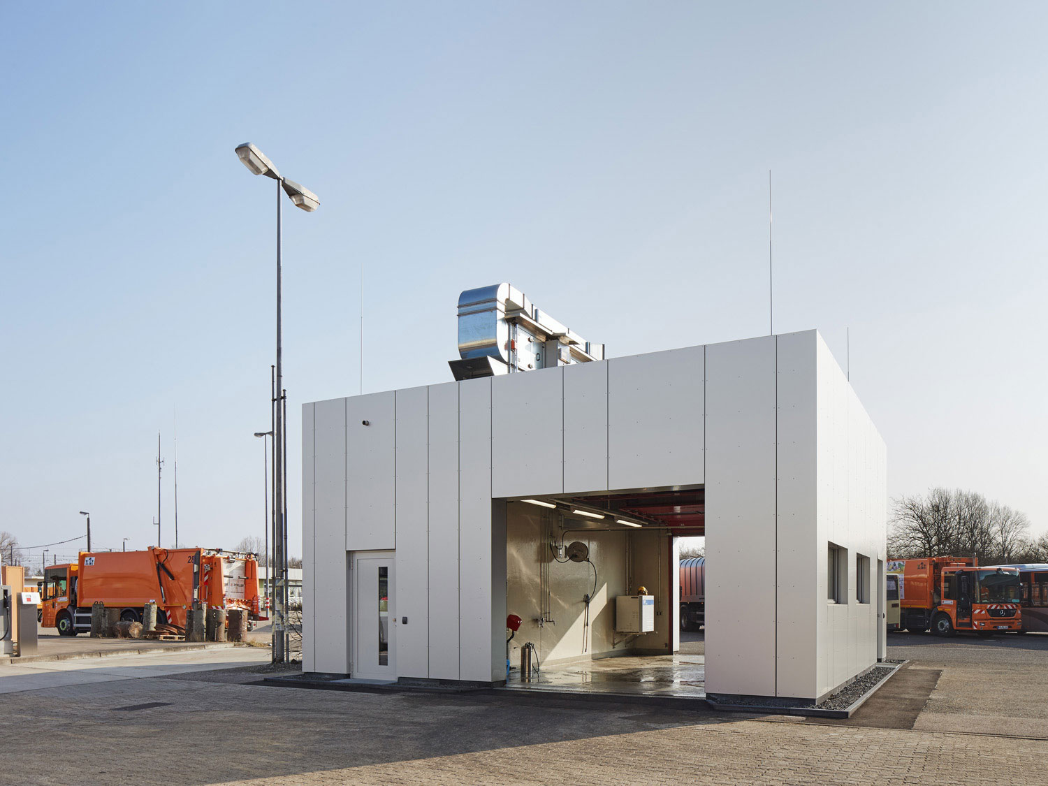 Neubau einer Reinigungskabine bestehend aus einer Waschhalle zur Reinigung von Großteilen der S-Bahnen und einer Waschkabine mit Vorbereitungsraum zur Reinigung der Toiletten.