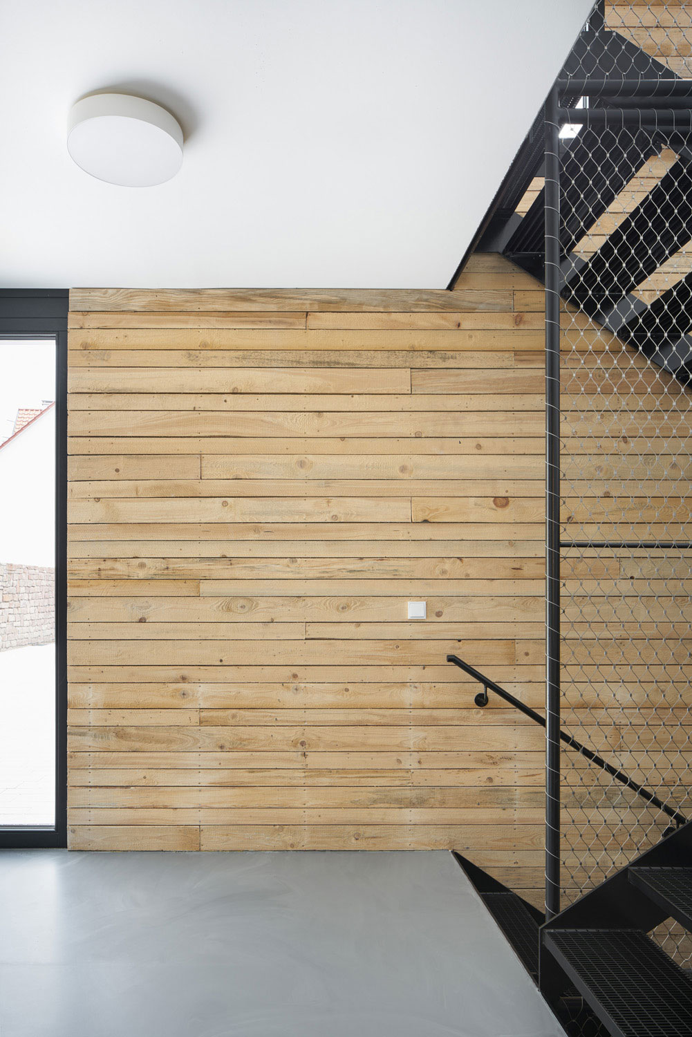 Es entstand ein Ensemble aus Vorderhaus mit Praxis und ein Hinterhaus mit Wohnen. Das Vorderhaus ist wie die alten Fachwerk-Bauernhäuser freistehend, das Hinterhaus ist Teil einer Reihe, der Scheunenreihe. Ortstypisch haben beide Gebäude steile Satteldächer, die jedoch modern, scharf geschnitten ausgeführt wurden. Materialität und Farben finden sich in beiden Häusern wieder, sodass die Zusammengehörigkeit unterstrichen wird.