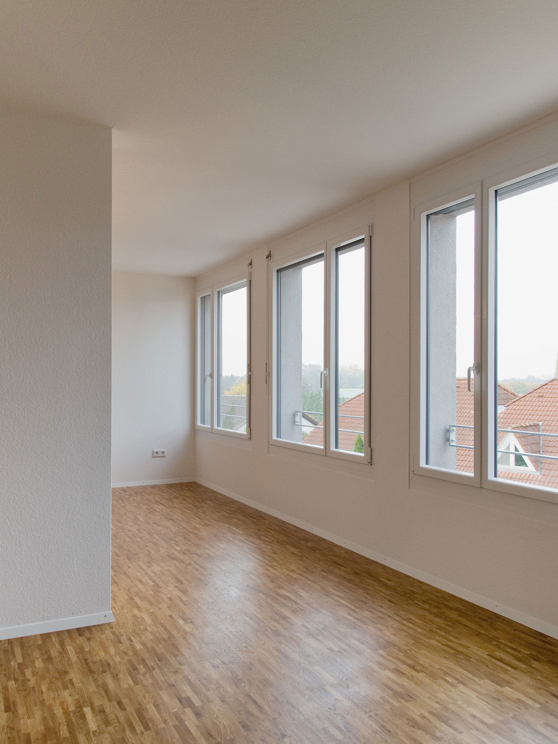 Auf dem schmalen, langen Grundstück im Ortskern von Rheinstetten stand ein sanierungsbedürftiger Altbau. Der Bebauungsplan ließ ein Vorder- und ein Rückgebäude zu, jedoch mit der Auflage, dass das Vorderhaus genau an der gleichen Stelle stehen musste wie der zum Abriss freigegebene Altbau.