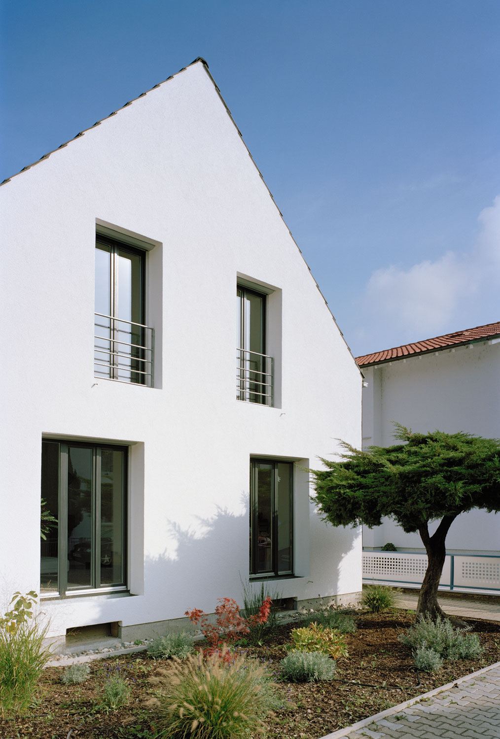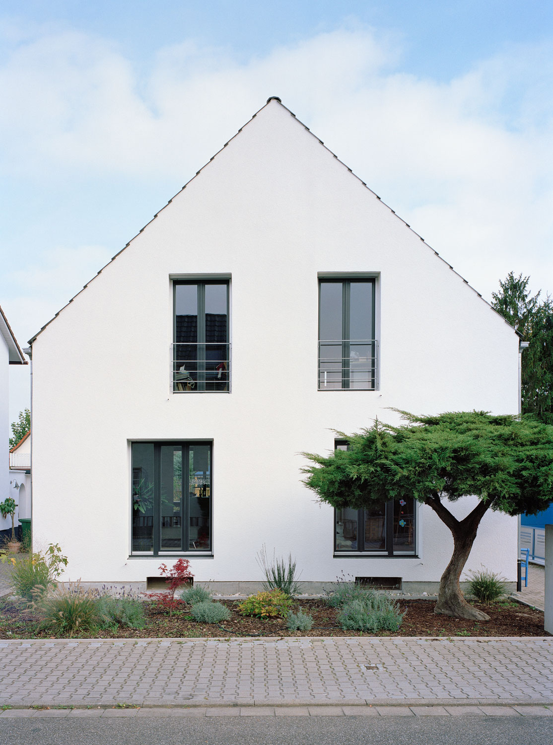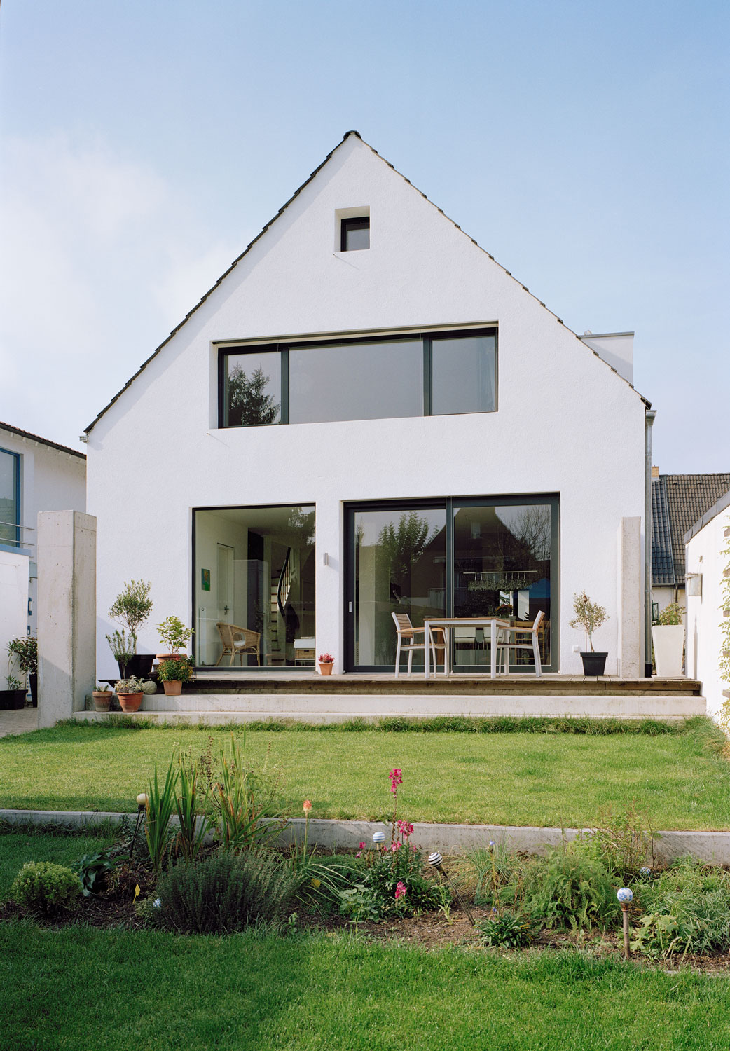 Bei diesem Projekt sollte ein kleines Siedlungshäuschen aus den 30er-Jahren mit einer Grundfläche von ca. 7,00 x 9,00 m für eine vierköpfige Familie umgebaut und erweitert werden. Zwei Möglicheiten der Erweiterung waren denkbar, eine Aufstockung oder eine Verlängerung des Hauses Richtung Garten.
