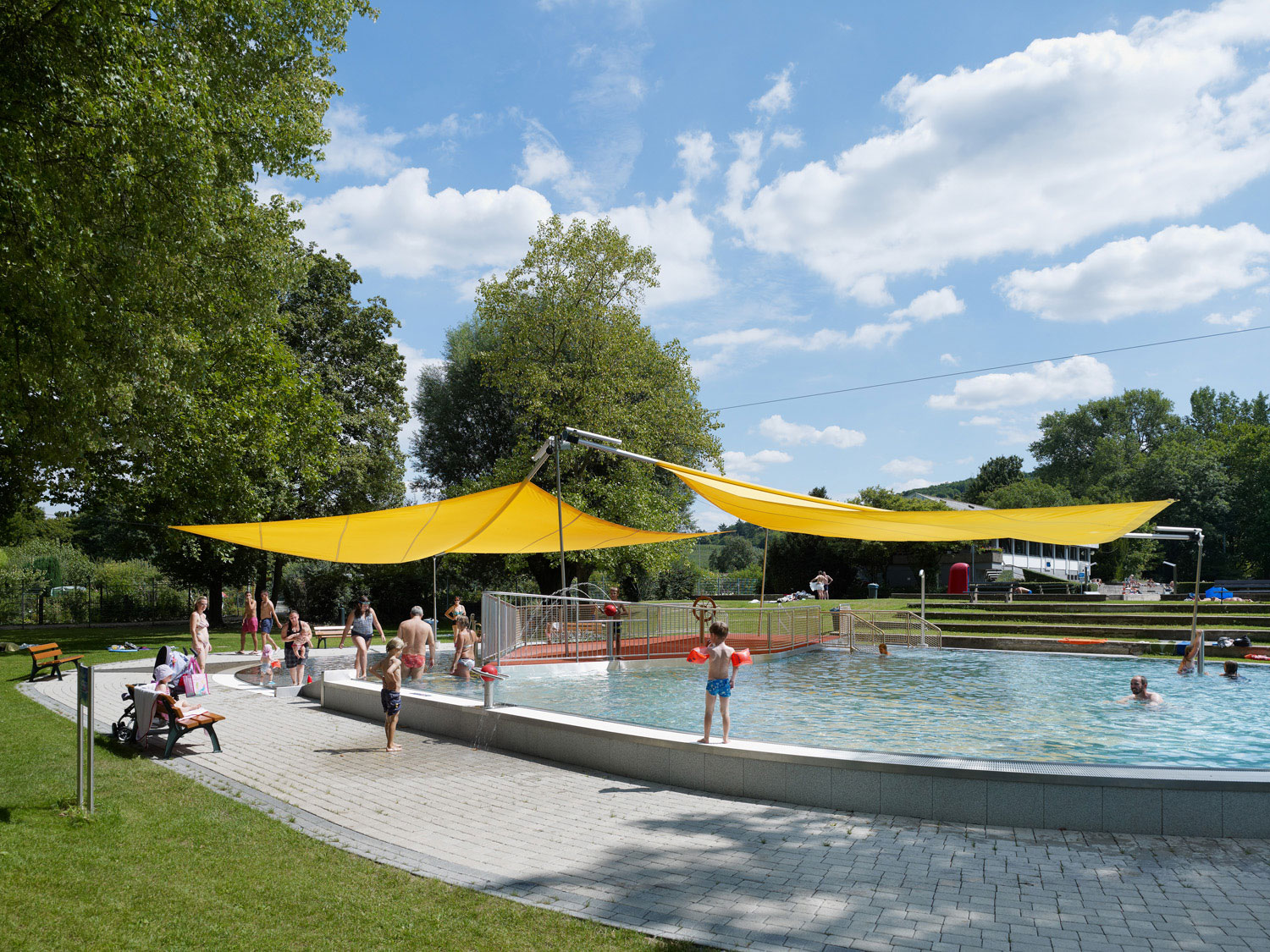 Das neue Kinder-/Planschbecken wird in die Kontur des bestehenden Planschbeckens eingebaut. Das Becken wird zusätzlich mit kindgerechten Attraktionen ausgestattet, mit der das Medium Wasser den Kindern nähergebracht werden soll.