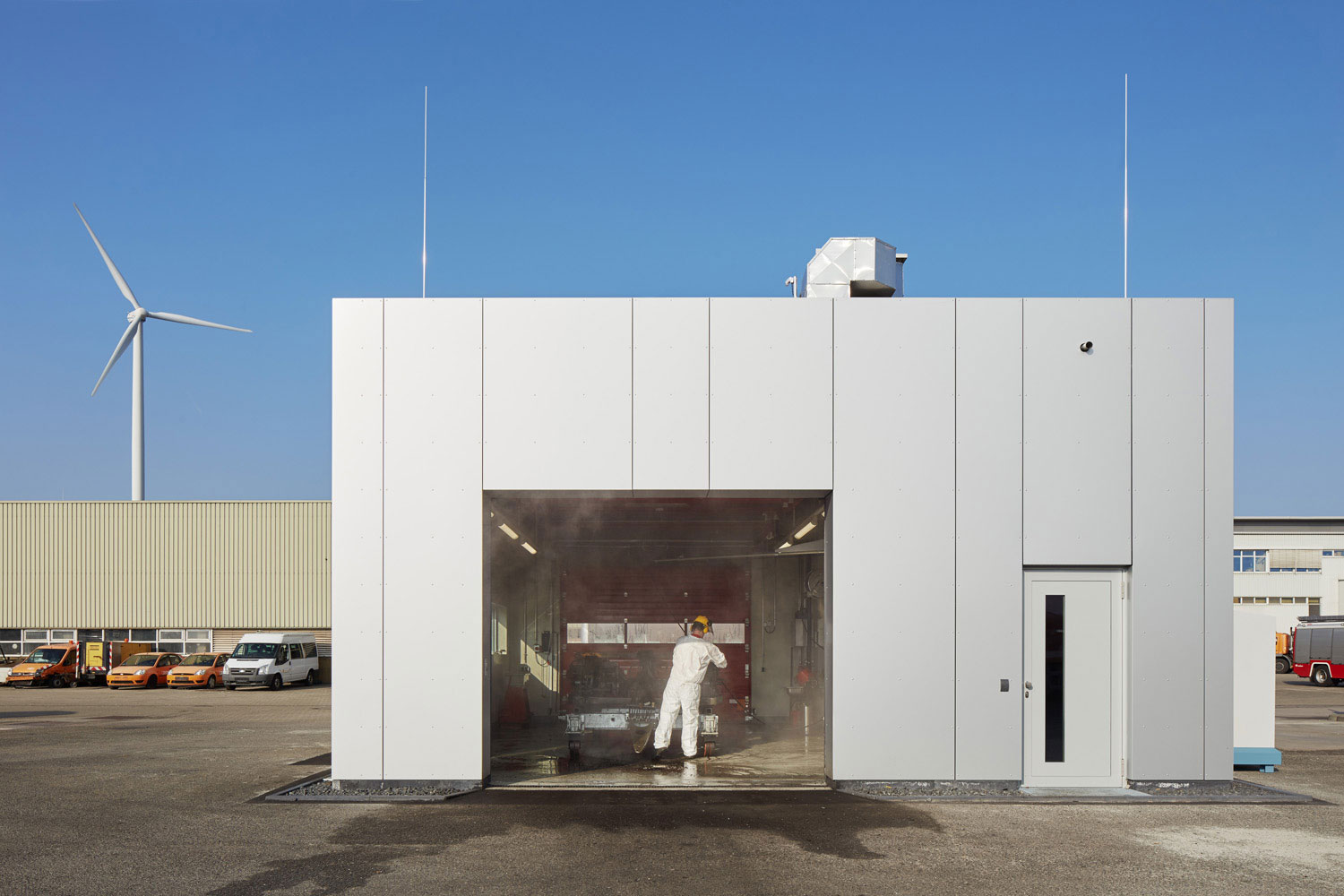 Neubau einer Reinigungskabine bestehend aus einer Waschhalle zur Reinigung von Großteilen der S-Bahnen und einer Waschkabine mit Vorbereitungsraum zur Reinigung der Toiletten.