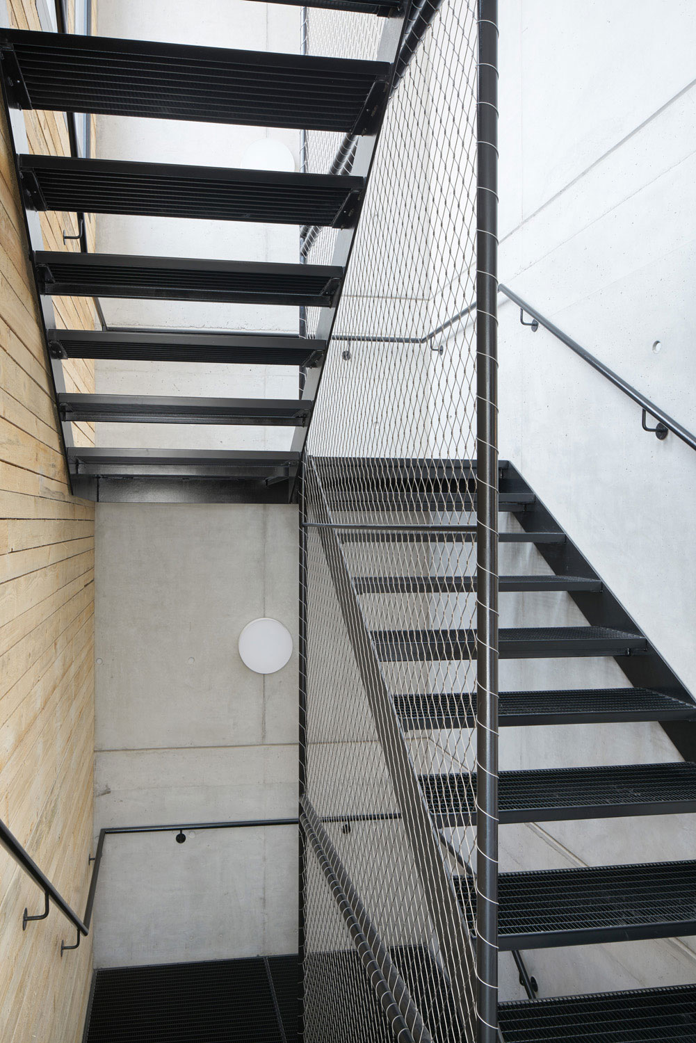 Stahlwangentreppe mit aufgelegten Gitterroststufen
