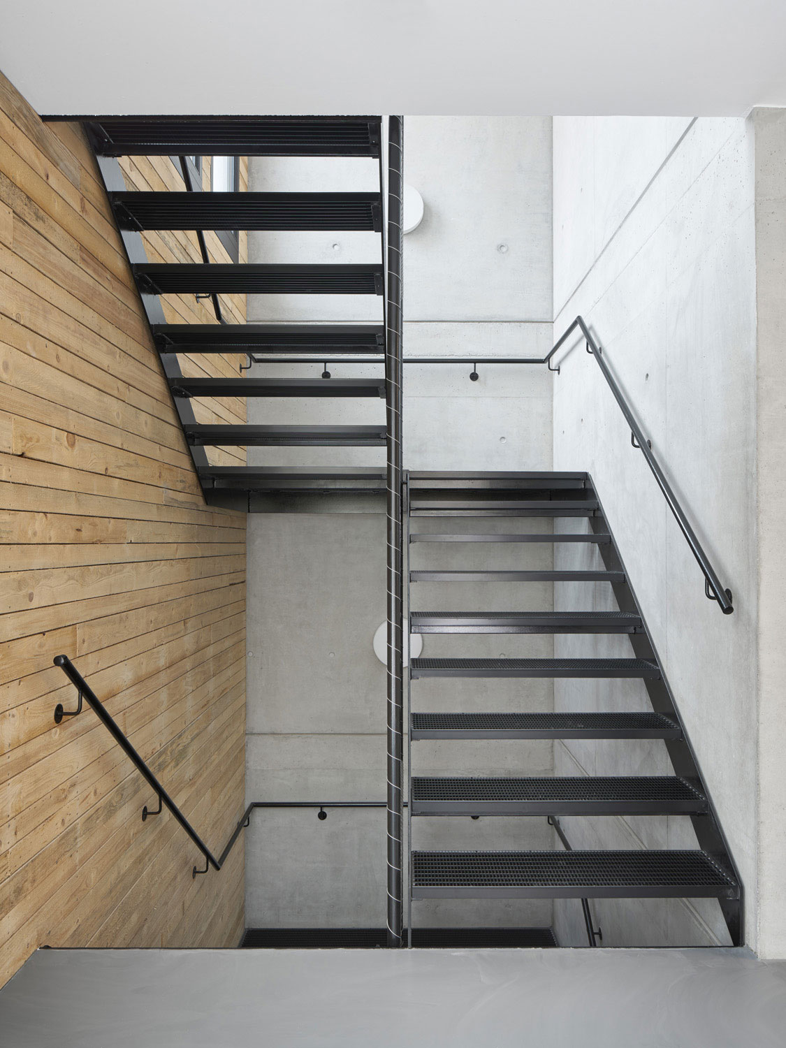 Stahlwangentreppe mit aufgelegten Gitterroststufen